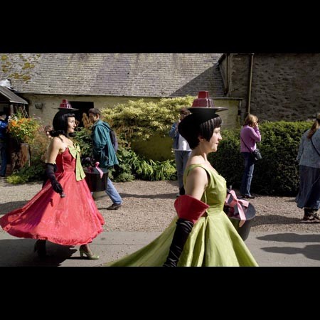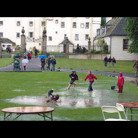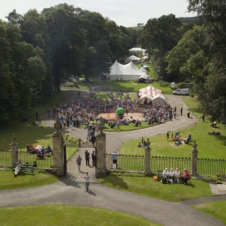 Looking down from the house. The Courtyard and Wineglass Lawn: the Traquair Fair.