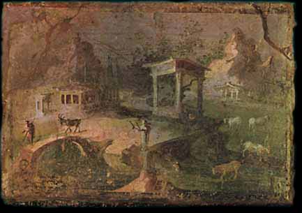 sacred landscape with statue of Diana, and a shepherd